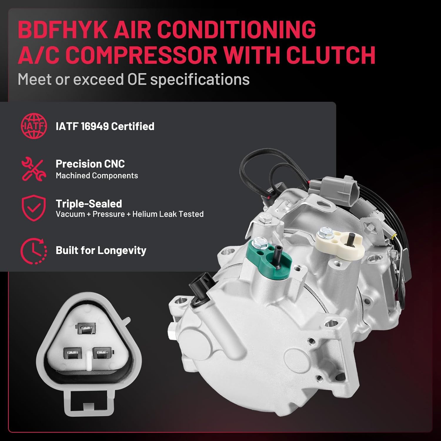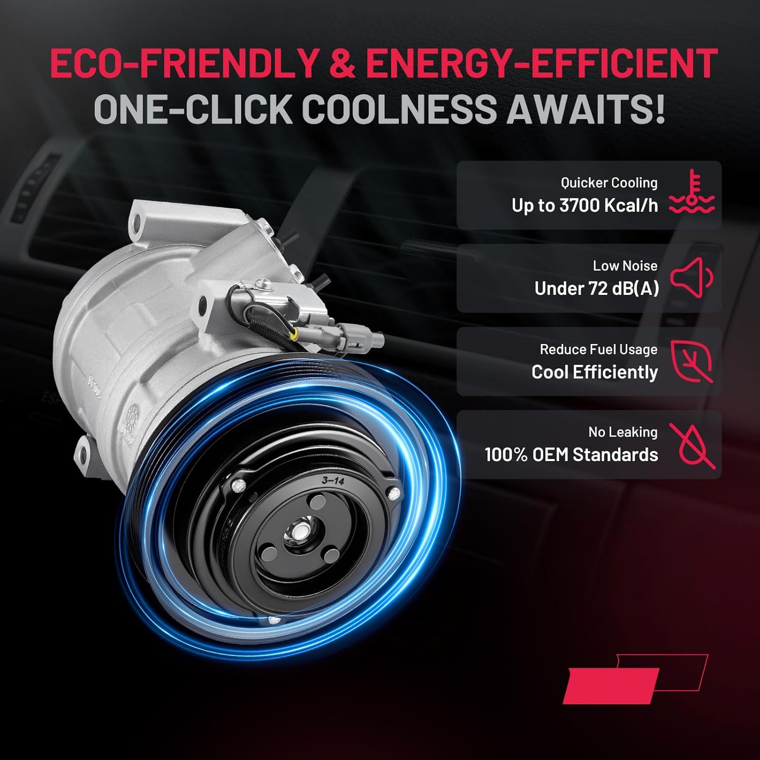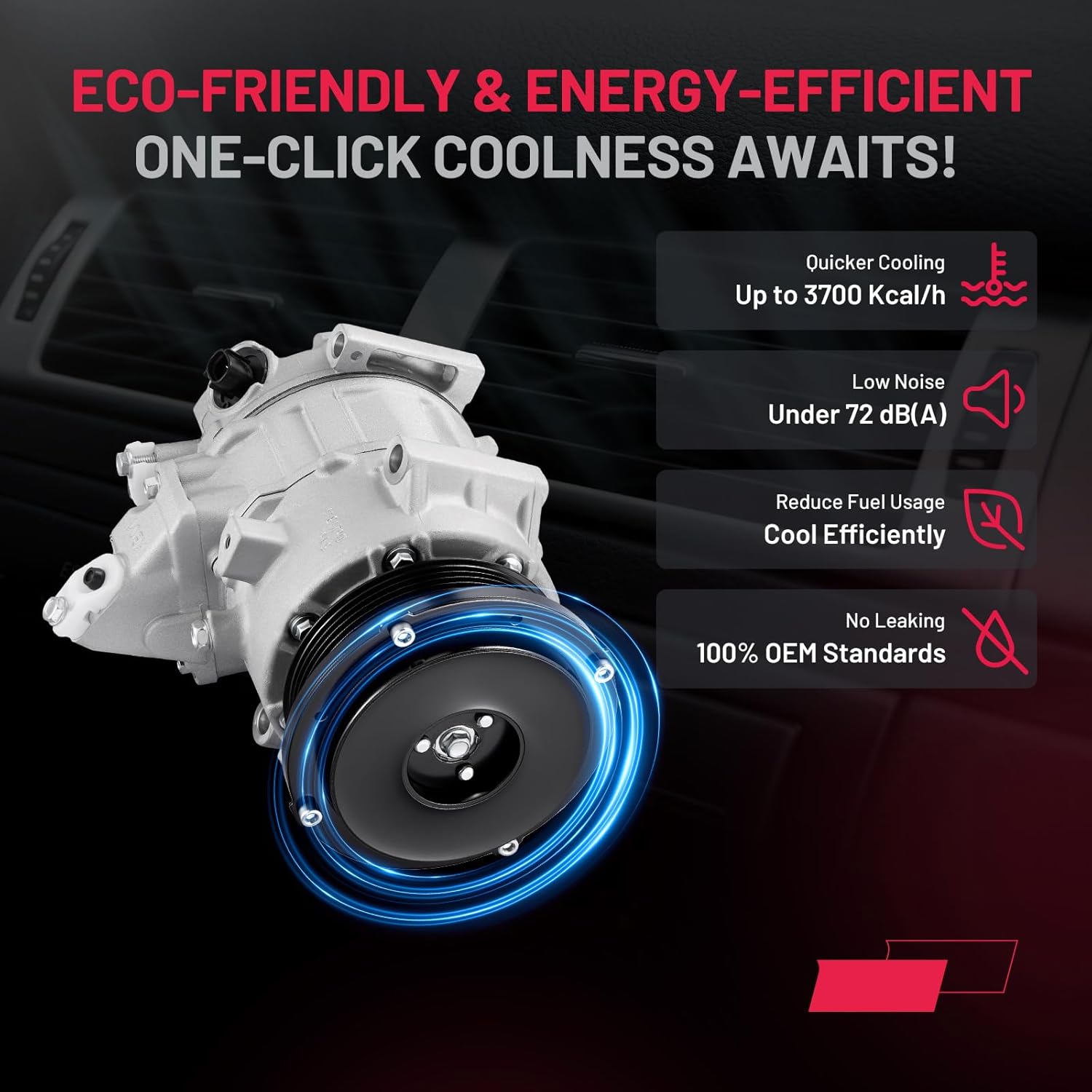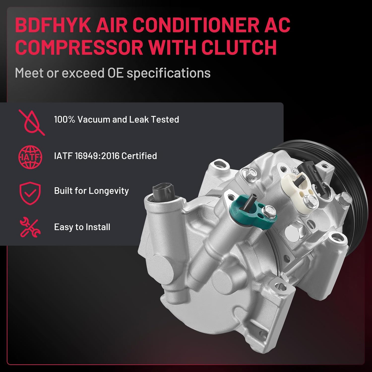 • Durably Constructed & Tested - Manufactured from high-strength aluminum and wear-resistant components to match OEM standards. Each compressor is tested for reliable cooling performance, quiet operation, durability, and leak resistance before it reaches you