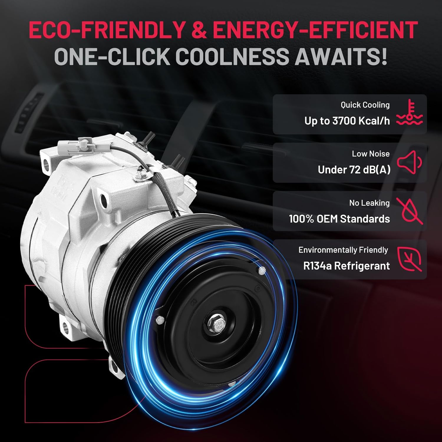 • Powerful & Quiet Cooling - Quickly creates a cool cabin with a robust 4500W cooling capacity at 140℉. Its low-vibration design operates quietly under 70 dB for a peaceful and comfortable driving